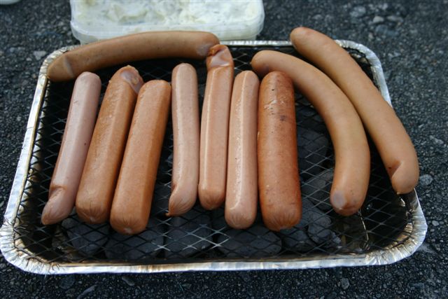 Ungane nytta ventetida før båltenning og grilling med å bade |