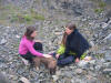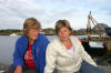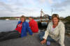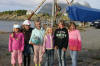 Jammen er da slitsomt å tømme havet med ei bytte på jonsokafta. Emmy, Monica og Dorthea tek seg ein pust i bakken. |
