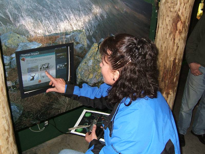 Gry in front of the Beinn Eighe visitors centre. The displays here are interactive and very educational. |