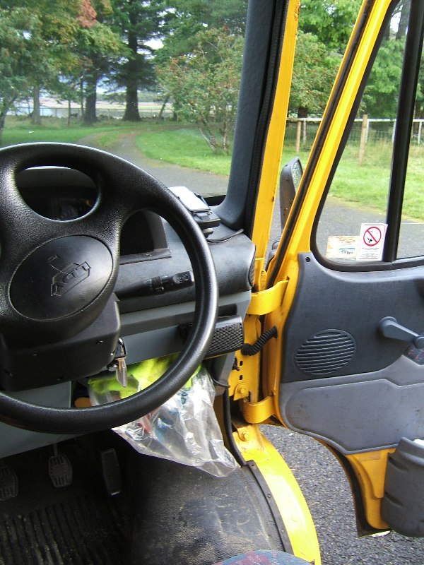 Every time Anne Britt was about to enter the bus, she discovered that the wheel was on the wrong side. |
