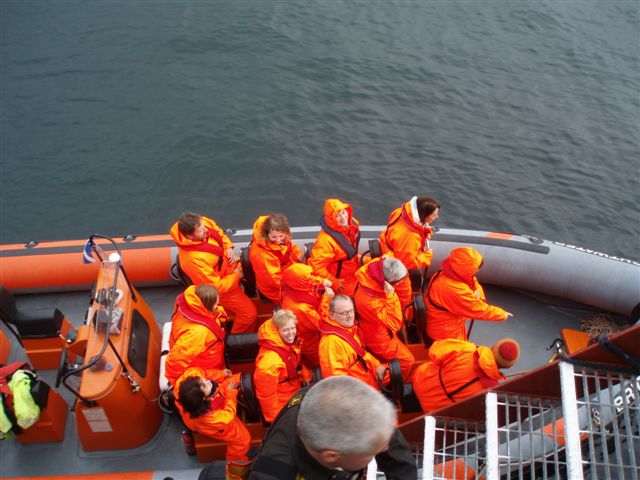 The little girls are ready for a trip in the RIB. |