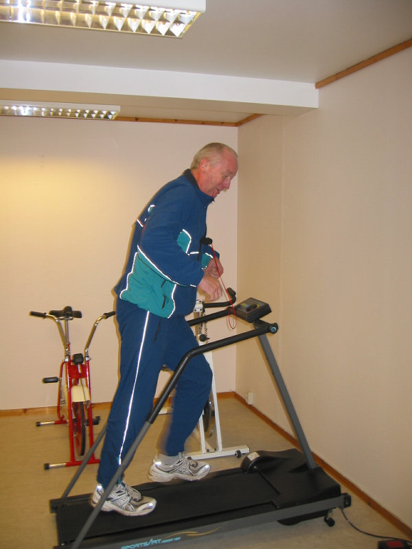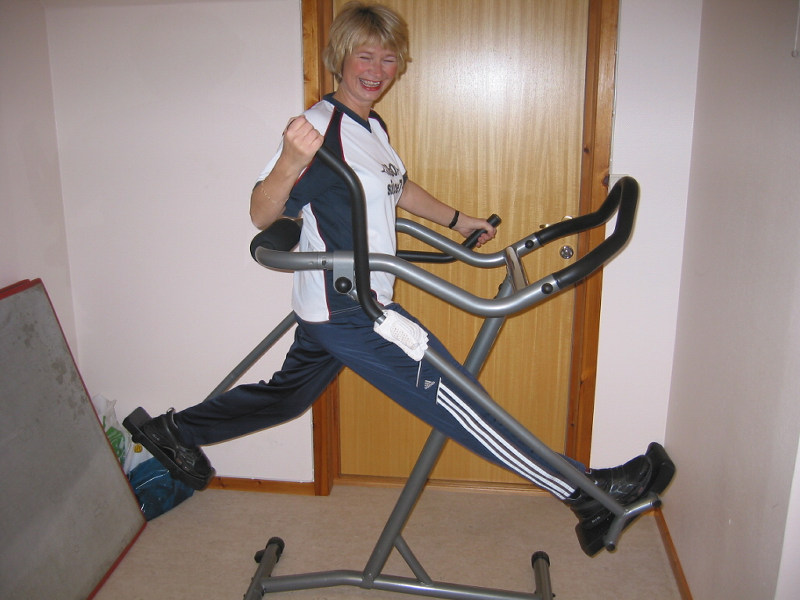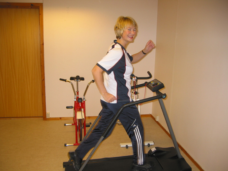 Heidi i elegante steg i gåmaskina, ho har skikkelig dreisen på desse apparata. |