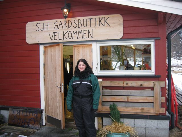 Marianne klar til å handle i gardsbutikken på jordbruksskulen |