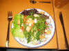 Forretten: salat med lokallaga geitost og heimelaga kruttongar. |