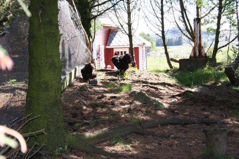 Labbetuss sit trygt i fanget til Johannes, klar til å reise på Værlandet for å sjekke høne |