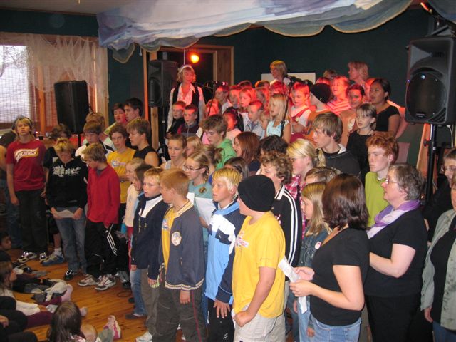 Folk har begynt å samle seg i salen |