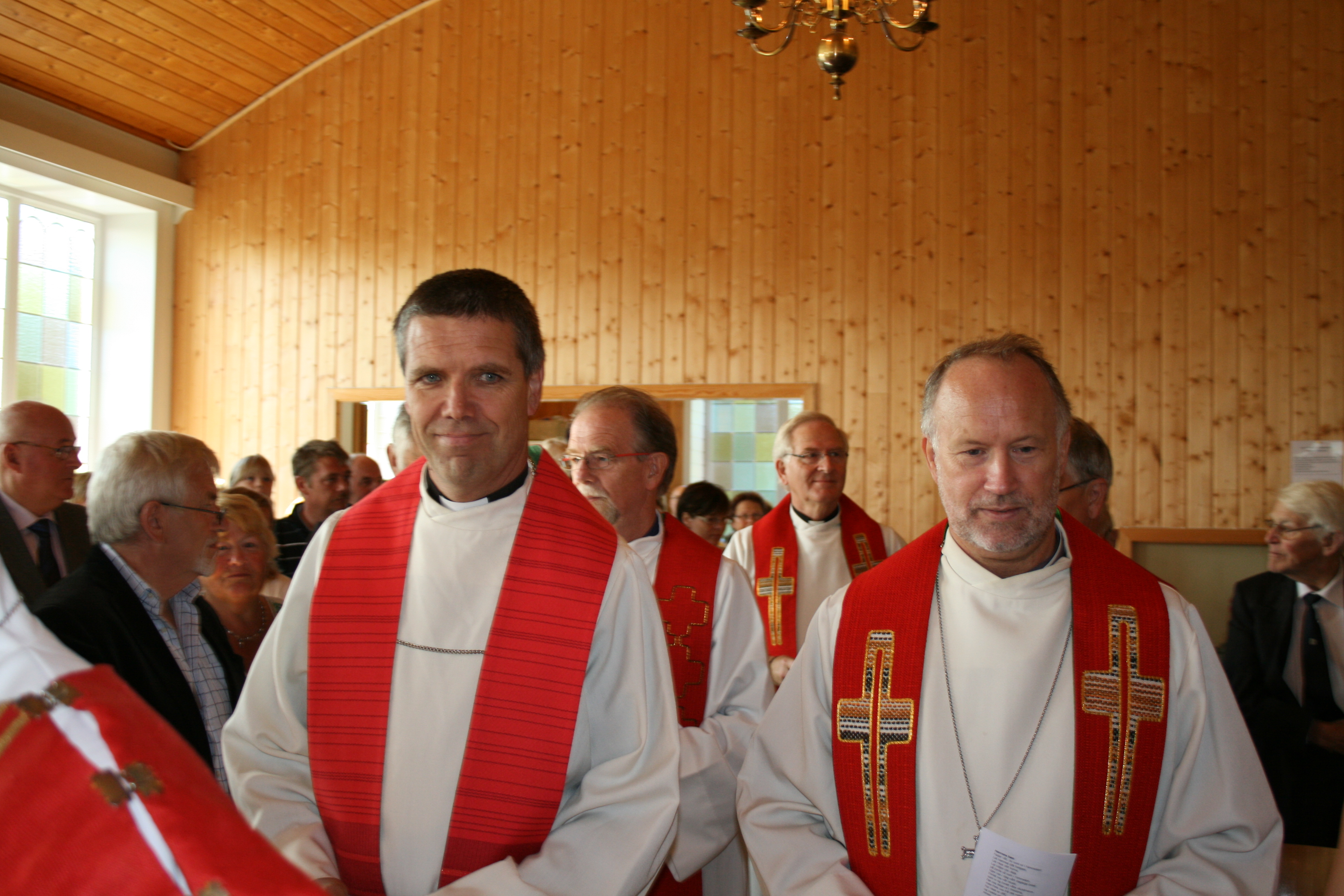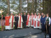 Prosesjonen etter gudstenesta: Jaymarie, Fykse, Knapstad, Myklebust, Veland, Furnes, Nævdal, Skadal, Rossavik, Sande, Knutsen Bratten, Myrstad, Heimark, gunn. Alle prestane som har vore i Askvoll kommune sidan innvielsen av Værlandet Bedehuskapell var med på jubileumet!! |