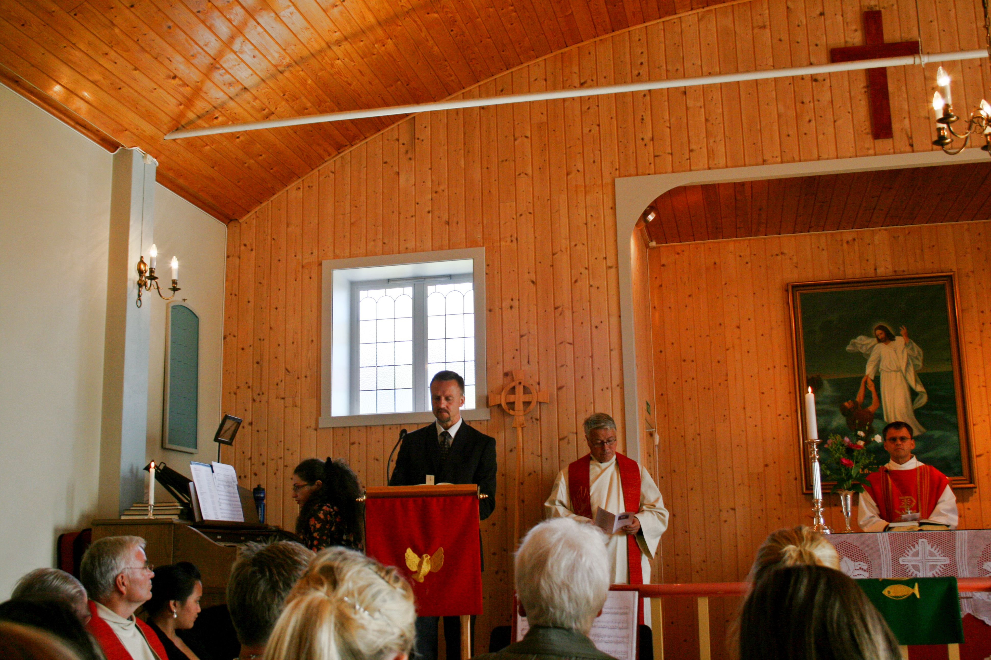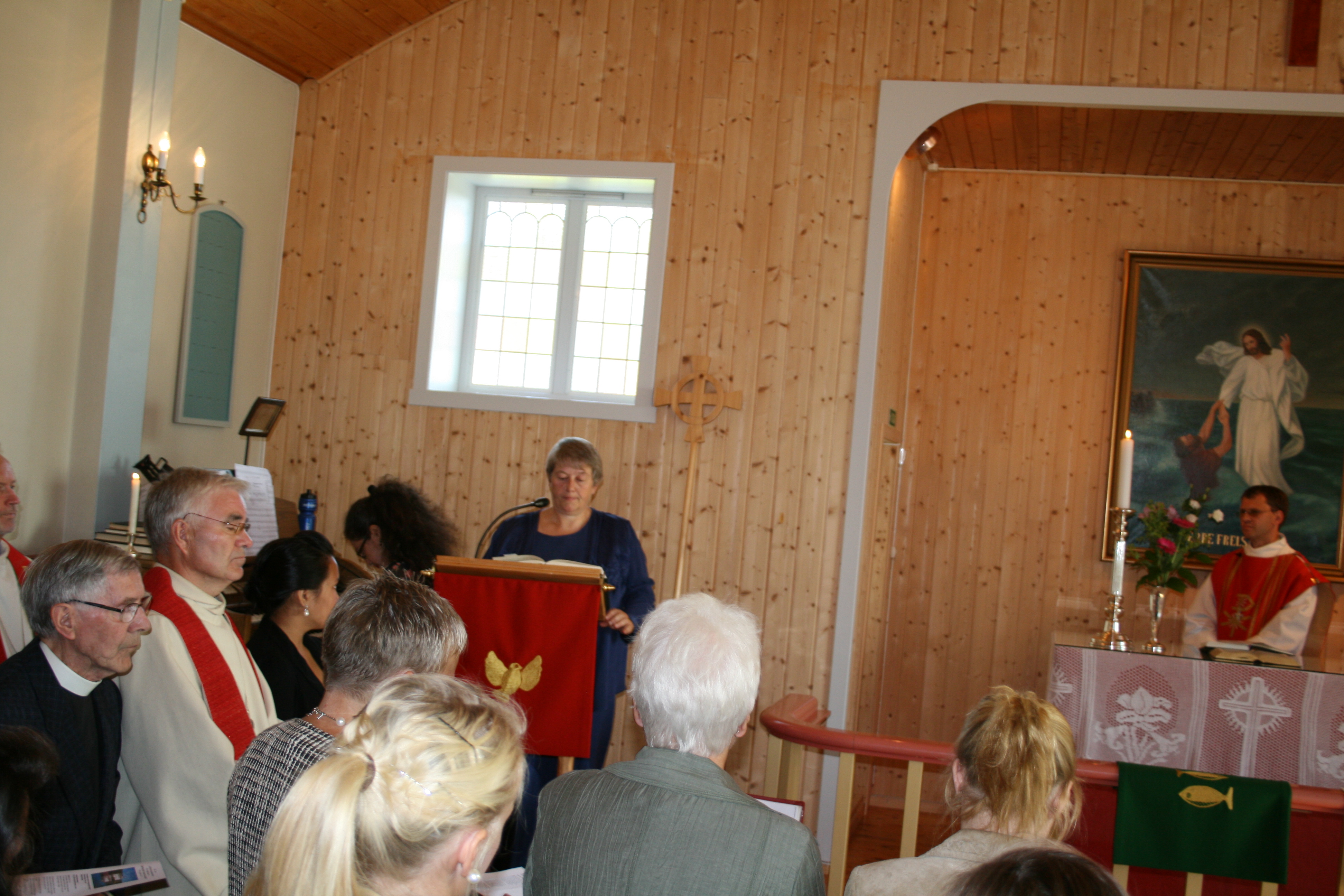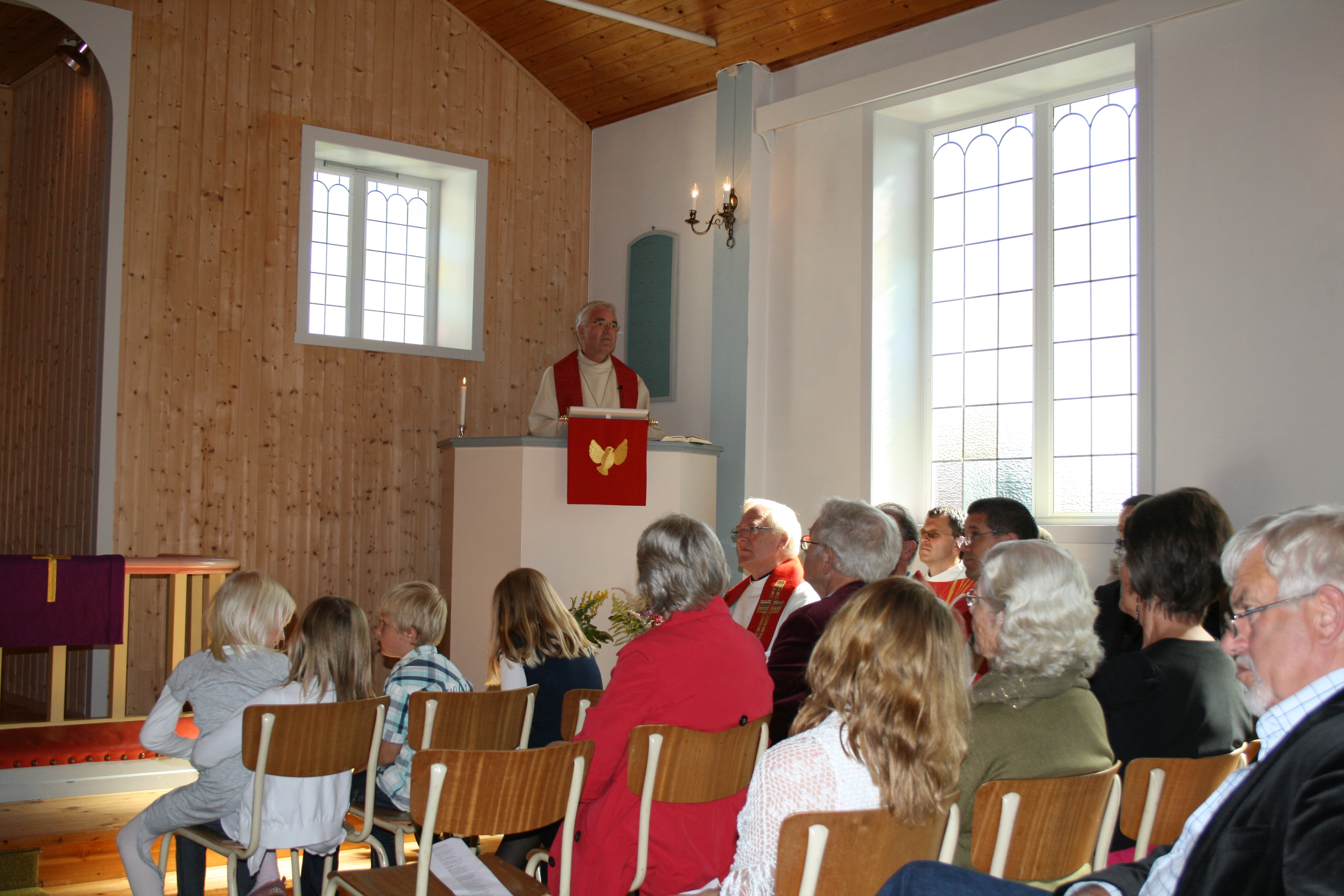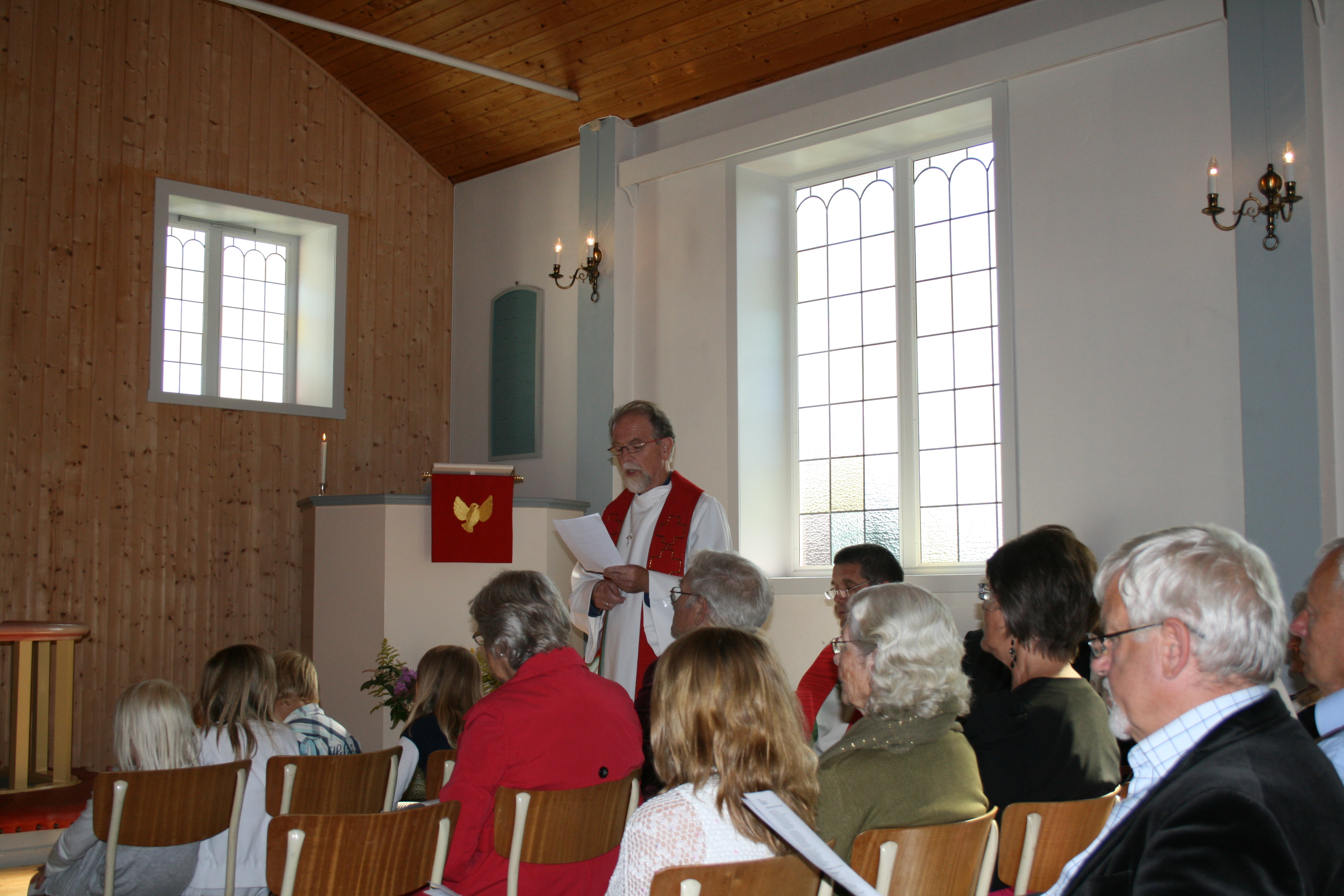 Bygdefolk og tilreisande samlar seg til gudsteneste |