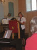 Vi gløymde rett og slett å ta bilde av dei suverene medhjelparane på kjøkenet som laga istand ei fantastisk god betasupe. Men heldigvis er det nokon som har knipsa desse tre damene her: Edel og så skimtar vi Margaretha Fedøy i bakgrunnen. Kari og Wenche var òg med og serverte. Er det nokon som har bilder av "kjøkengjengen" så er vi glade for å få dei. |