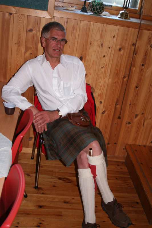 Skikkelig god internasjonal samrøre. Leiar for Skottlandsgjengen Peter Davidson og leiar for øyabuarane Aud Kari Steinsland |