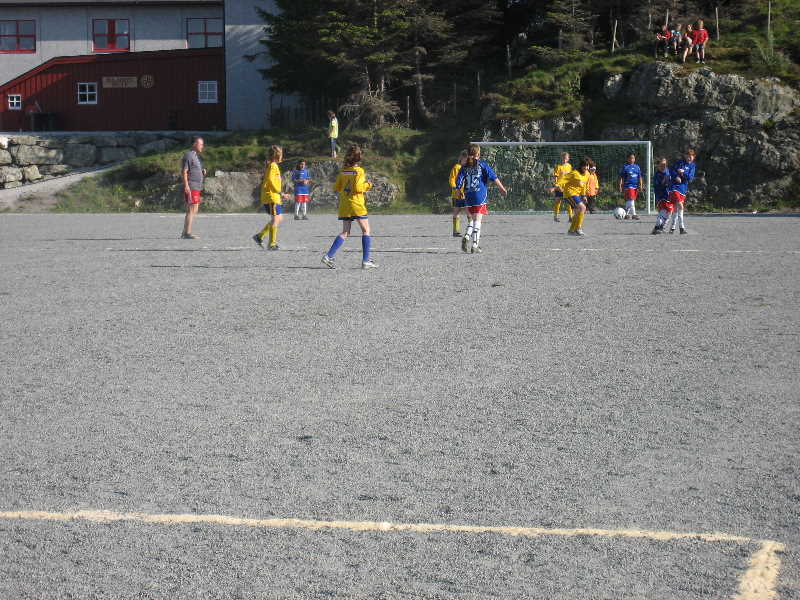 Smågutane har og samla seg for å sjå lillejentene spele fotball |