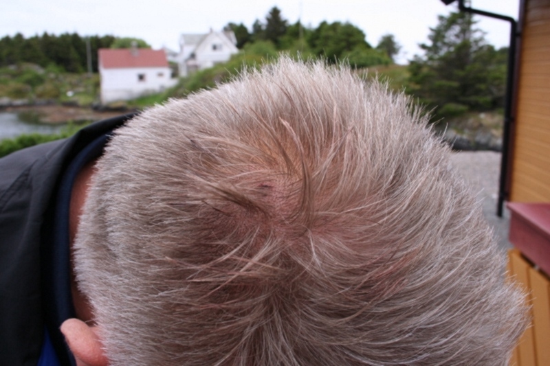 Her ser ein litt av skaden Steinar fekk på mårakvisten. Steinar er ikkje den som har den tynnaste skallen, så her har da vore store krefter i sving.. |