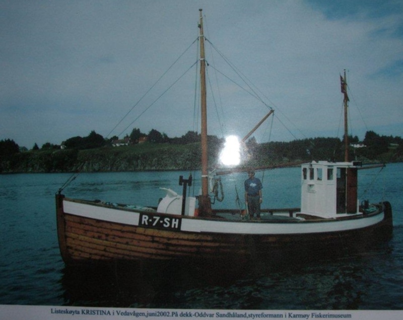 ![]() "Kristina": Ei typisk Listerskøyte bygd på Lista 1917. 40' lang 12,5 ' brei 6' djup. Bilete er utlånt av Karmøy Fiskerimuseum. |