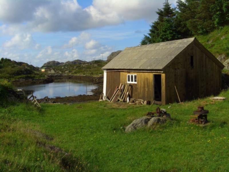 ![]() Fjæra i Kalvøy der dei monterte dei fyrste motorane, dei brukte og fjæra til slipping av skøytene for klinking av saum m.m. Bilete er utlånt av Werner Vesterås. |
