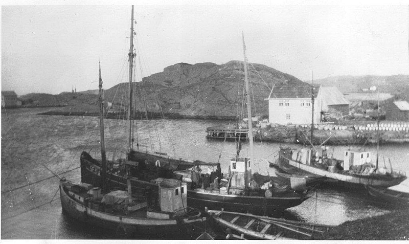 vi på bilete ifrå Værøyhamna 1935 der båten ligg fortøyd ved